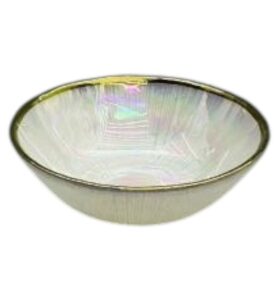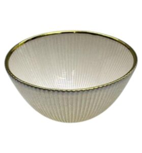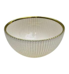 SKU: WY11-07 SKU: WY11-07- Bowl de Vidrio 15×7 cm – Set Vajilla Blanca Texturizada con Borde Dorado- Precio normal: