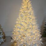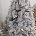 Árbol navideño color rosado pastel de 150 cm con efecto nieve (flocked). Cuenta con 500…