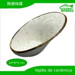 Plato cerámico dividido, ideal para aperitivos, salsas o snacks. Diseño elegante y funcional.